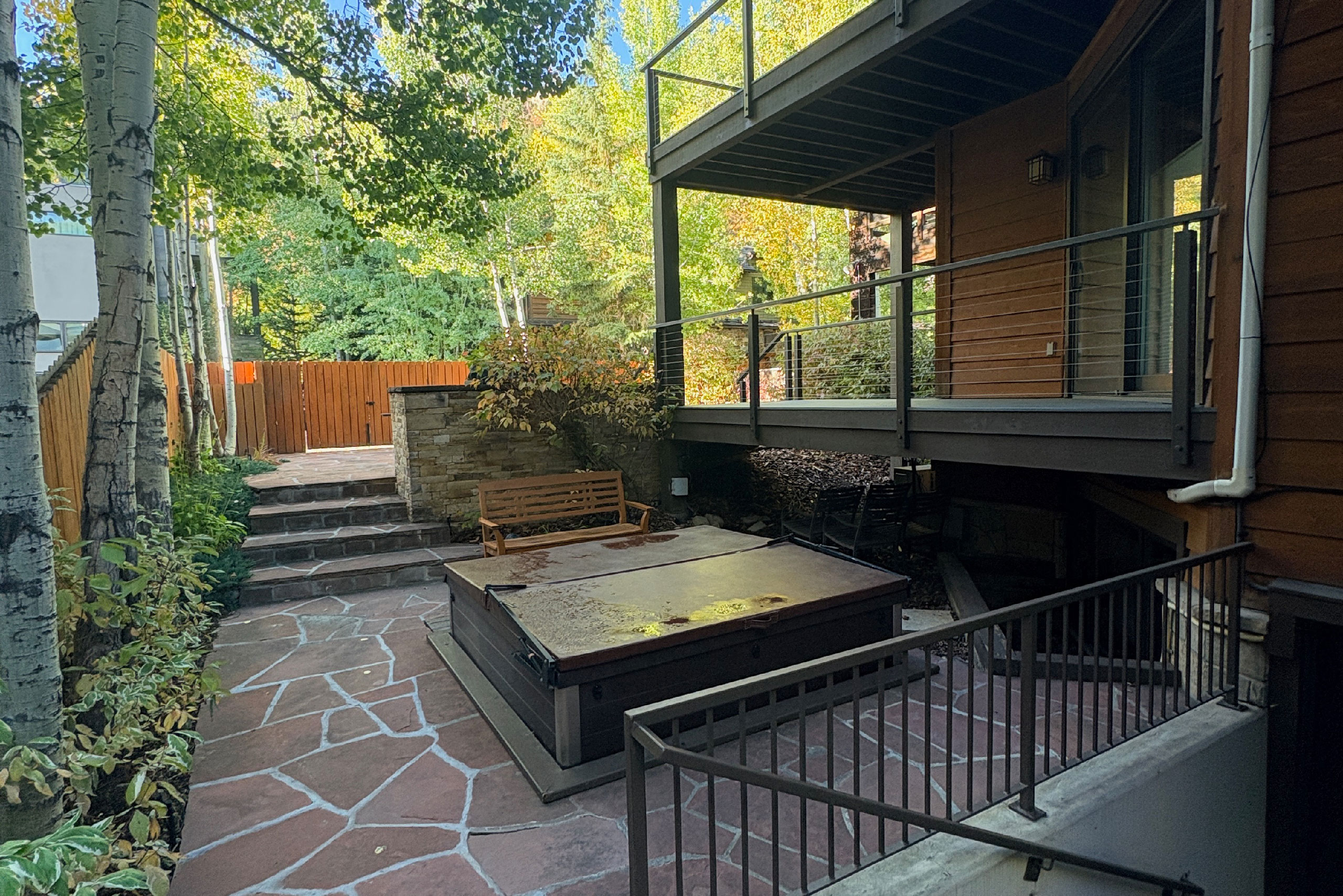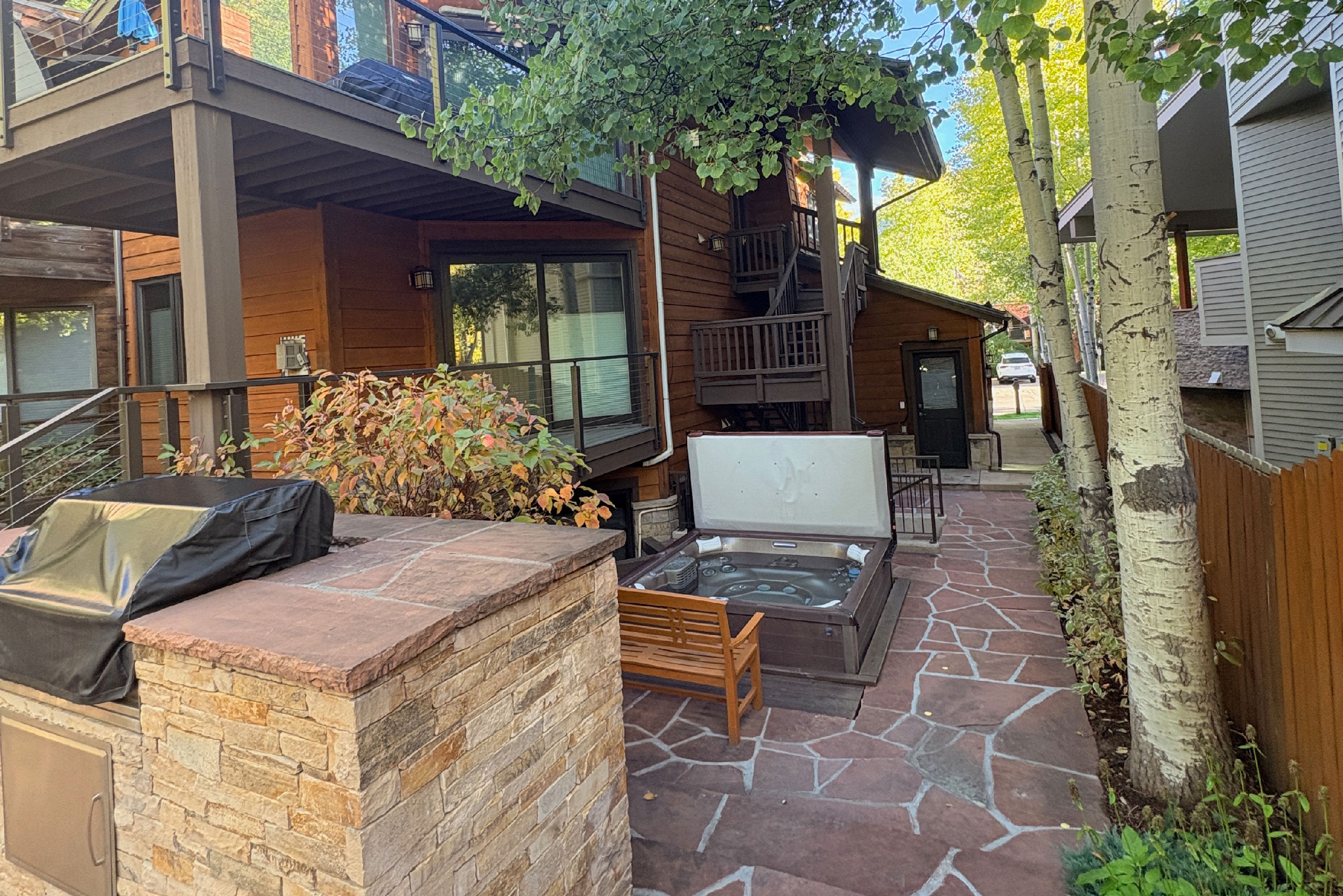 Fabulous, rare five-bedroom home, all with en-suite baths, in Aspen’s central core. Walk everywhere from this prime location just three blocks from the Hyman Avenue Mall and all of Aspen’s restaurants, shops and skiing. Stunning Aspen Mountain views from south-facing upstairs living level and deck. Enjoy outdoor dining on your backyard flagstone patio with firepit and built-in grill. Fifth bedroom is currently used as a second living/recreation area with pullout sofa, full bath, second laundry area and separate entrance. One-car garage, radiant heat, three gas fireplaces, air-conditioning in top-level living area.